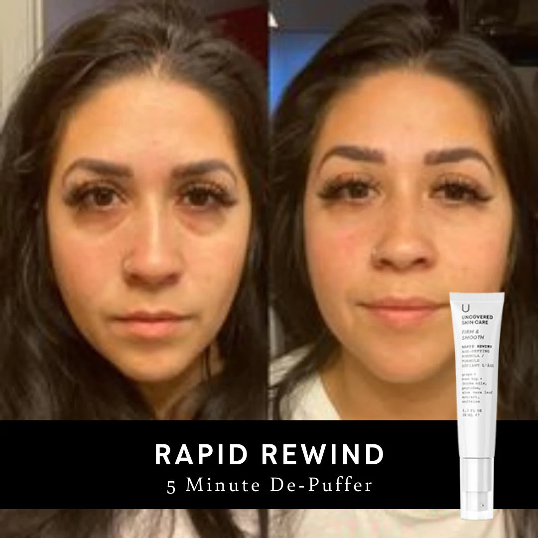 With Rapid Rewind, you’ll get smoother, tighter-looking skin in minutes with our unique formula powered with age-defying peptides and four botanicals known to help skin appear more youthful. Apply Rapid Rewind directly to your fine lines, wrinkles, and dark circles for a difference you can see and feel!